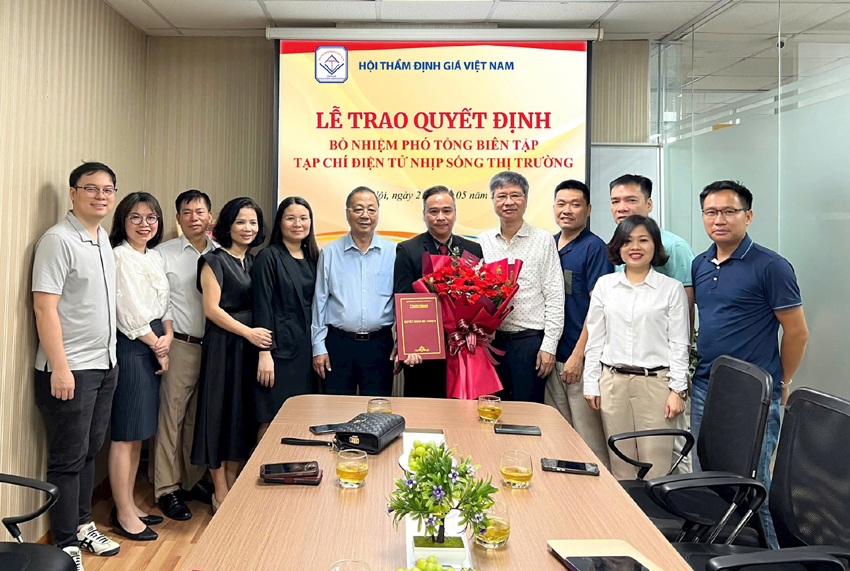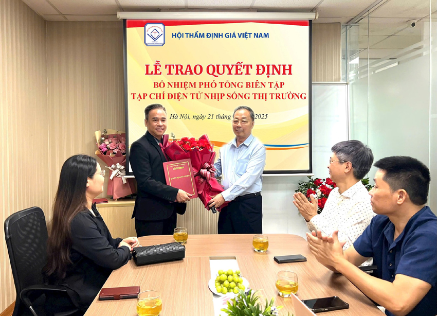 Theo đó, lãnh đạo Hội Thẩm định giá Việt Nam đã công bố quyết định bổ nhiệm Nhà báo Đinh Văn Tịnh giữ chức vụ Phó Tổng Biên tập Tạp chí điện tử Nhịp sống Thị trường kể từ ngày 21/5/2025.