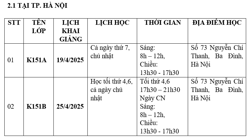 Đề nghị Học viên có nhu cầu học cần đăng ký sớm với Hội và nộp học phí trước ngày khai giảng. Trường hợp đến ngày khai giảng mới đóng học phí thì học viên cần thông báo với văn phòng Hội để Hội bố trí lớp học cho phù hợp. (Hội sẽ chỉ mở lớp khi học viên đã đóng học phí được tối thiểu 35 học viên tại Hà Nội và 40 học viên tại TP. HCM, TP Đà Nẵng. Trường hợp chưa đủ học viên Hội sẽ hoãn khai giảng và trả lại học phí cho học viên đã nộp nhanh chóng, kịp thời).