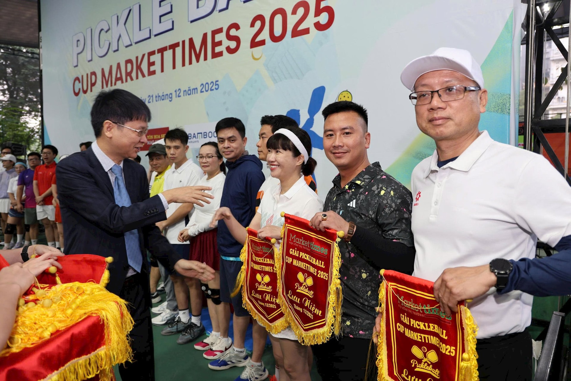 Bên cạnh sự hưởng ứng tham gia nhiệt tình của các vận động viên, Giải Pickleball MarketTimes 2025 cũng nhận được sự đồng hành, tài trợ của các tổ chức, doanh nghiệp gồm: Công ty CP Tập đoàn Hoa Sen; Công ty CP Vận hành và Bảo trì đường cao tốc Việt Nam (VEC O&M); Công ty Domin Việt Nam; Công ty CP Thẩm định giá Thế Kỷ (Cen Value); Công ty CP Thẩm định giá Vietory; Hãng Hàng không Tre Việt - Bamboo Airways; Công ty CP Thẩm định giá Tâm Việt; Công ty CP Thẩm định giá Thành Đô; Công ty CP Tư vấn quy hoạch và Thẩm định giá SBA; Công ty CP Thẩm định giá VNG Việt Nam; Công ty Bình Anh; Công ty TNHH Kiểm toán và Thẩm định giá Việt Nam (AVA)...